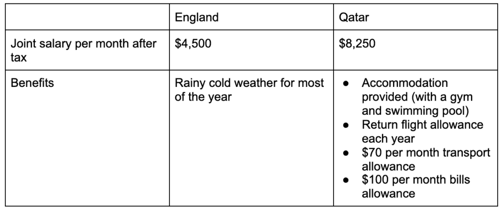 4. Wow, moving to Qatar is a pretty smart move — didn’t know that one could just relocate and double their after-tax income.
